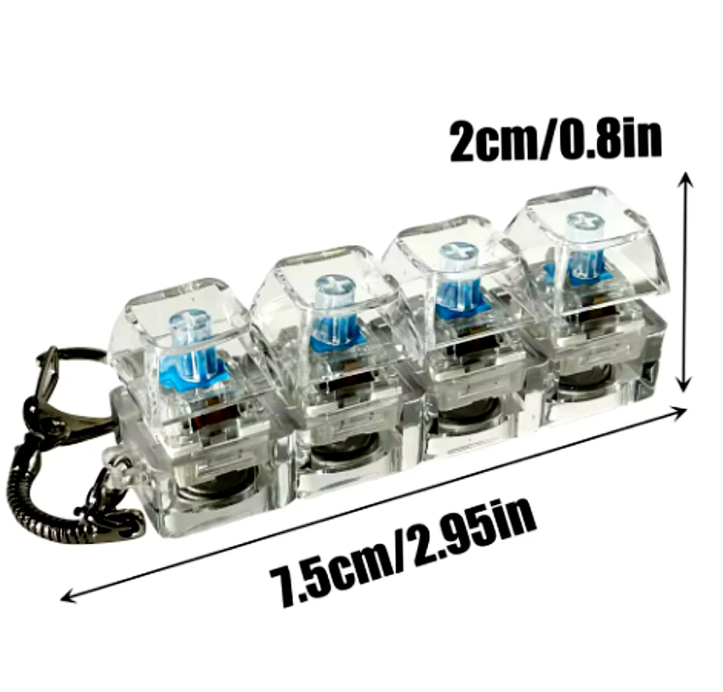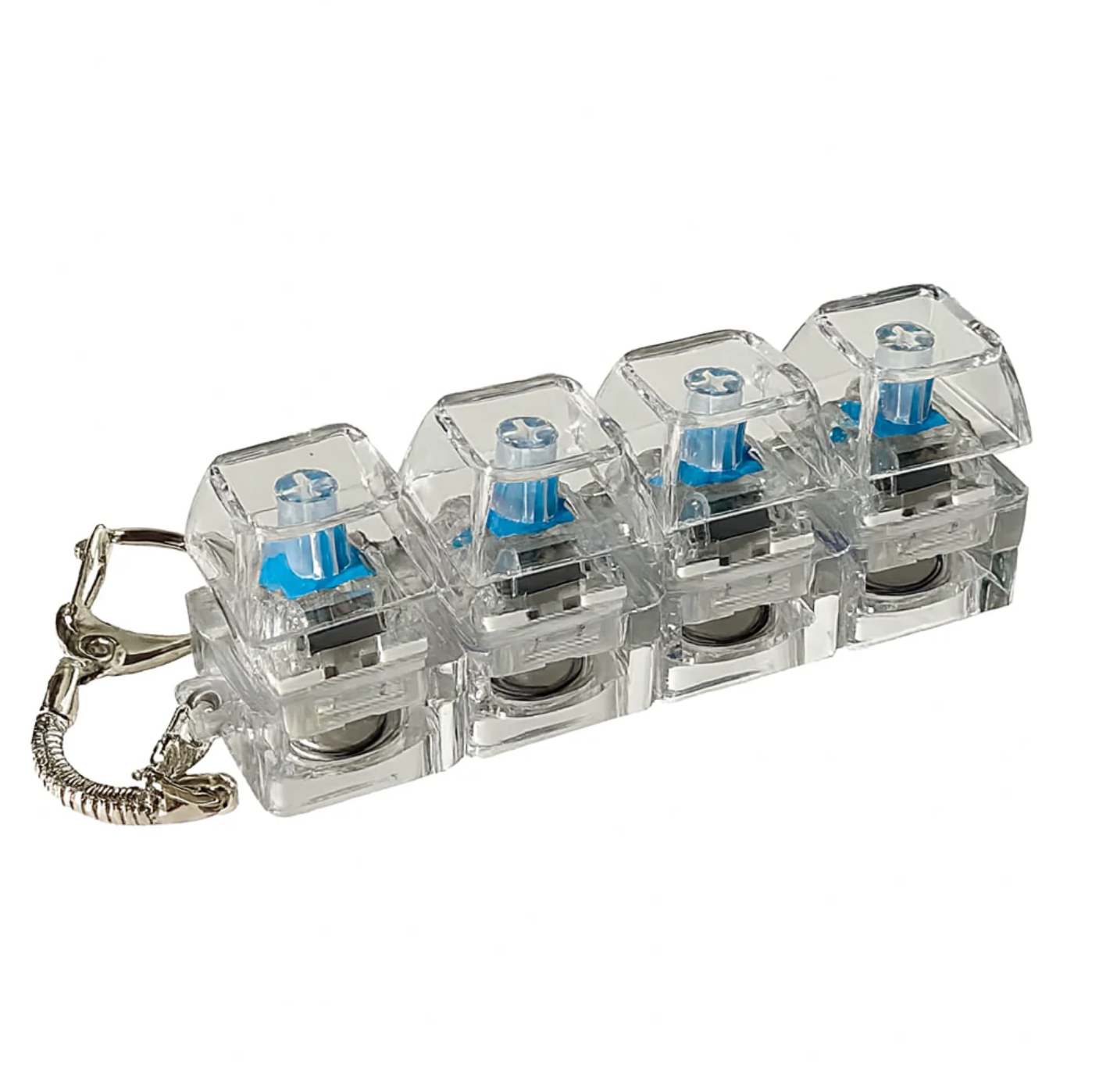 Un llavero con teclas mecánicas que combina clics, luces LED y sonido para liberar tensión, mejorar tu enfoque y acompañarte a todas partes.